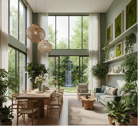Also called biophilic design, this trend is about bringing the outdoors in to create a sense of calm and connection to nature. To achieve this, you may add more indoor plants in your houses use organic, raw materials like reclaimed wood, stone, bamboo, and natural fibers. Also, it’s color palette is inspired by nature, such as serene blues, lush greens, and earthy browns. Once you remodel your home with this design, you will surely reduce your stress levels since the nature-inspired design can make you feel at peace.